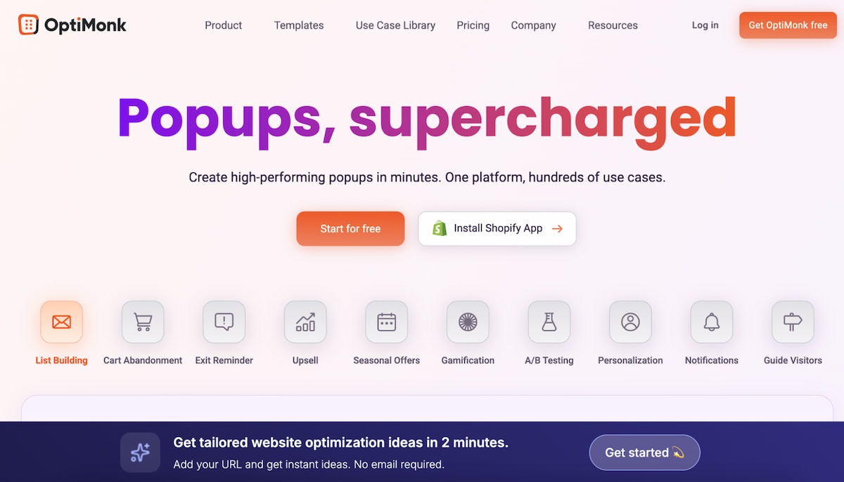 Another major player that deserves a spot on this list and is often recommended alongside other popular popup software solutions is OptiMonk. What makes this tool special is a combination of a large template library, AI features, and multi-step engagement workflows. This makes it particularly useful for eCommerce teams.